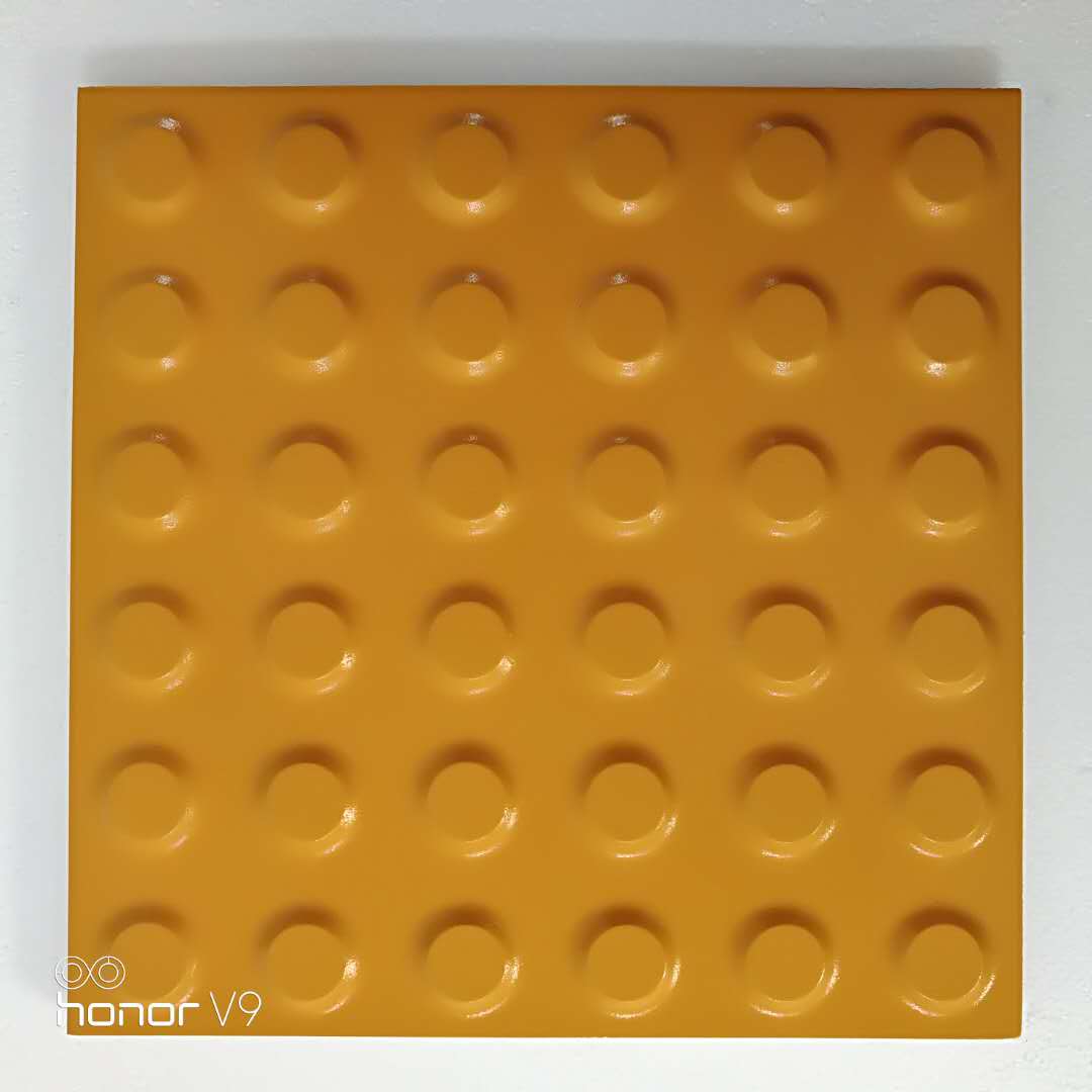 盲道磚 ,又叫盲人導(dǎo)向磚,導(dǎo)向磚是一種市政建設(shè)用的磚,300X300X20/25mm等規(guī)格,但外觀上與其它廣場磚有明顯的不同,表面有較高的點條狀浮凸,可為失明者指明前進的方向,故又稱盲人導(dǎo)向磚。盲道磚又稱盲道塊、盲道板、盲道片。是專門為盲人設(shè)計的地磚,防止盲人走錯道路,摔倒時防止摔傷。全瓷盲道磚是按照國際殘聯(lián)的有關(guān)標(biāo)準(zhǔn)制造的,設(shè)計優(yōu)良,具有靈敏的觸覺感,強腐蝕,耐損耗性和長壽命等特征。這種盲道磚的表面既美麗又光滑,適用于室內(nèi)或室外裝修。它凹凸的模型不僅可以使盲道更加安全,同時還美化環(huán)境作用。 盲道磚為盲人帶來福音,同時也美化了城市道路。目前市場上盲道磚有橡膠的,水泥機制的,還有就是瓷的。橡膠的盲道磚和地面粘接強度不高,還容易變形和掉色,水泥機制的吸水率大容易凍裂。全瓷盲道磚具有吸水率小,有極佳的耐磨性和使用壽命,防滑性能更是優(yōu)越,而且易清洗,盲道磚是按國家行業(yè)標(biāo)準(zhǔn)規(guī)定的盲道尺寸規(guī)格生產(chǎn)的,主要用于城市道路及火車站、汽車站、地鐵站臺、人行道上的鋪設(shè),它是殘疾人安全指引行走無障礙的專用設(shè)施。