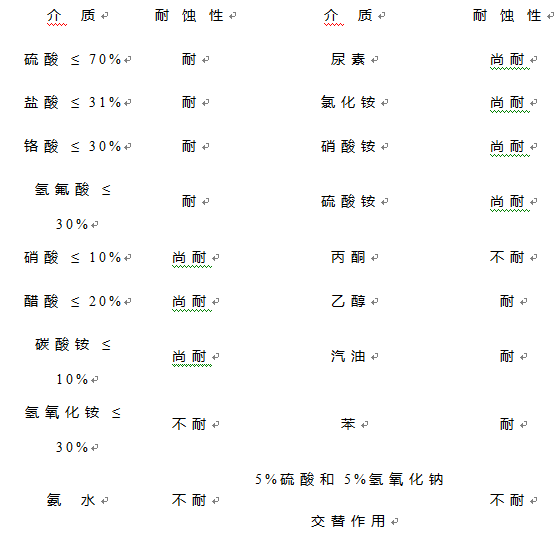 ● PF酚醛樹脂固化物的耐腐蝕性能