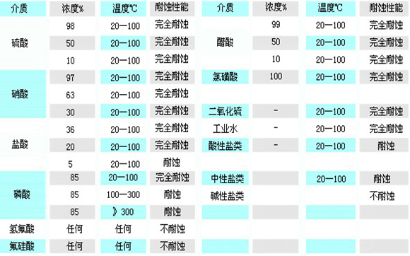 KPI膠泥可用于各種濃度的硫酸、鹽酸、硝酸、磷酸、鉻酸、次氯酸、氯磺酸、甲酸、草酸、醋酸等酸類(lèi),各類(lèi)有機(jī)溶劑、各類(lèi)酸性鹽類(lèi)、氯氣、雙氧水等氧化性介質(zhì),以及上述各類(lèi)介質(zhì)的混合物中。